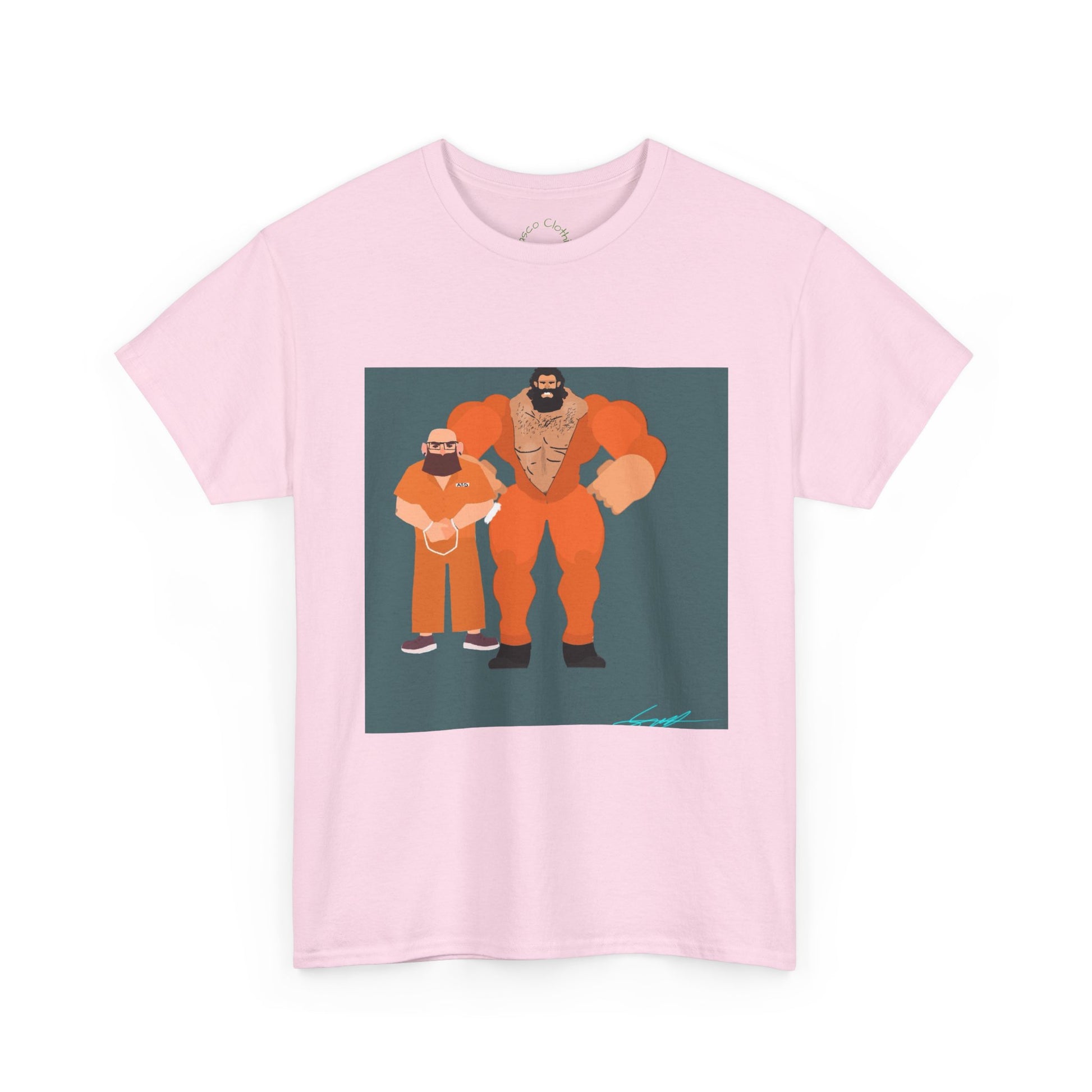 Wrestler Duo Graphic Tee — Strongman & Tiny Fan Illustration T-Shirt